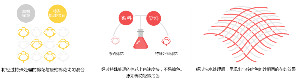 同时,多样的风格与颜色选择,更使这款全新的色纺纱适合各种各样的纺织品运用。