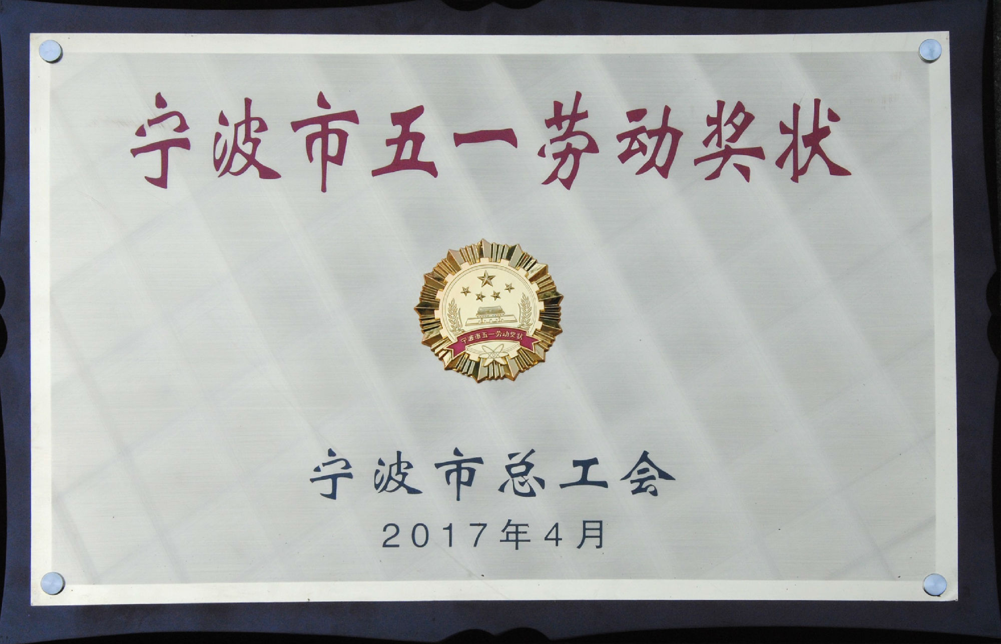 百隆东方荣获的奖状