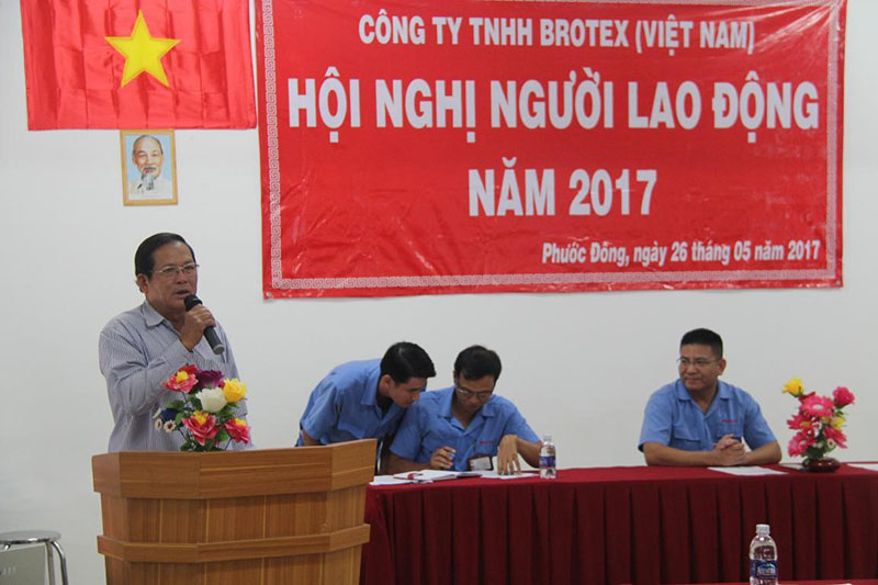 图为百隆(越南)2017年度职工代表大会越南地方总工会领导致辞