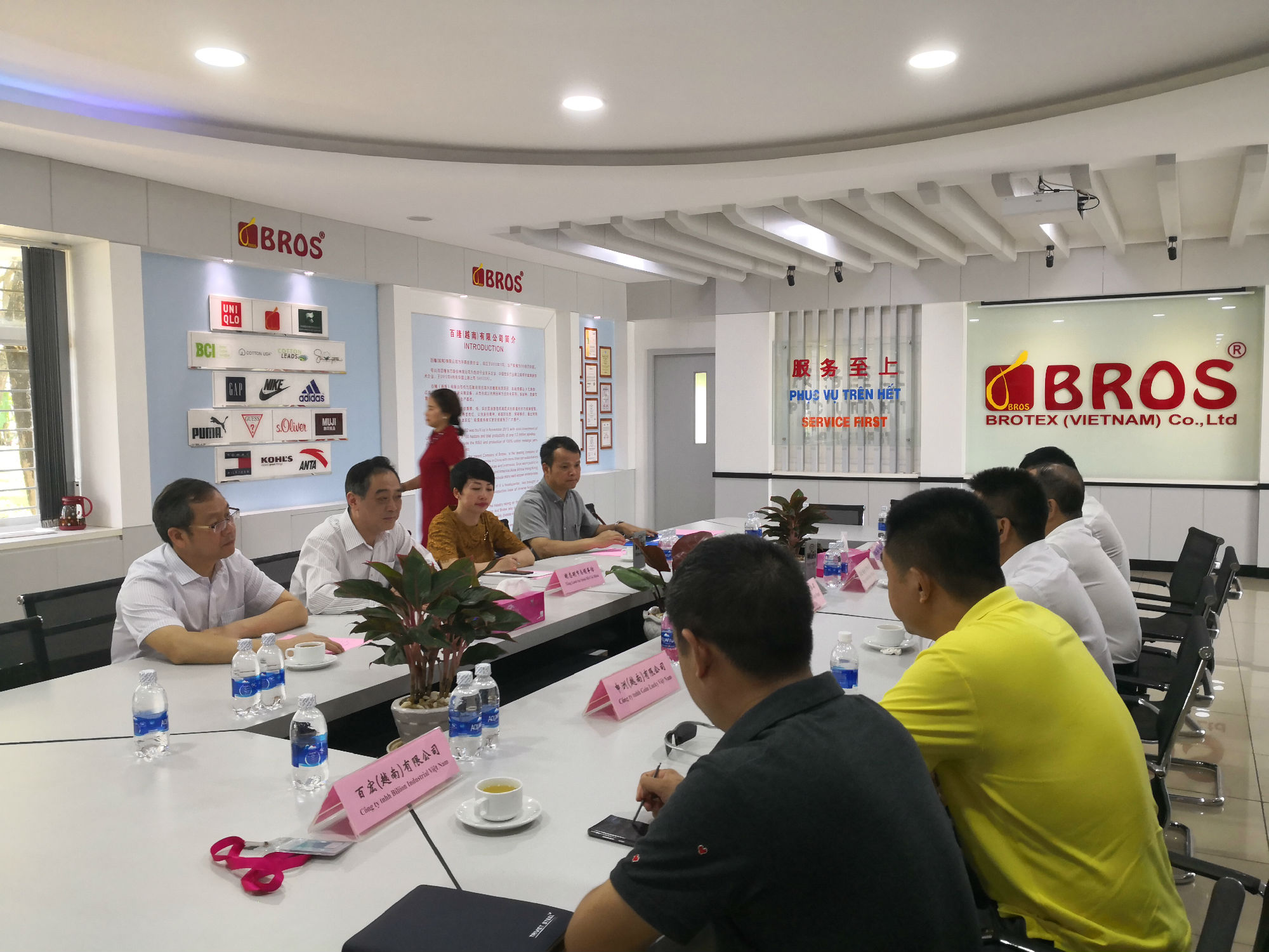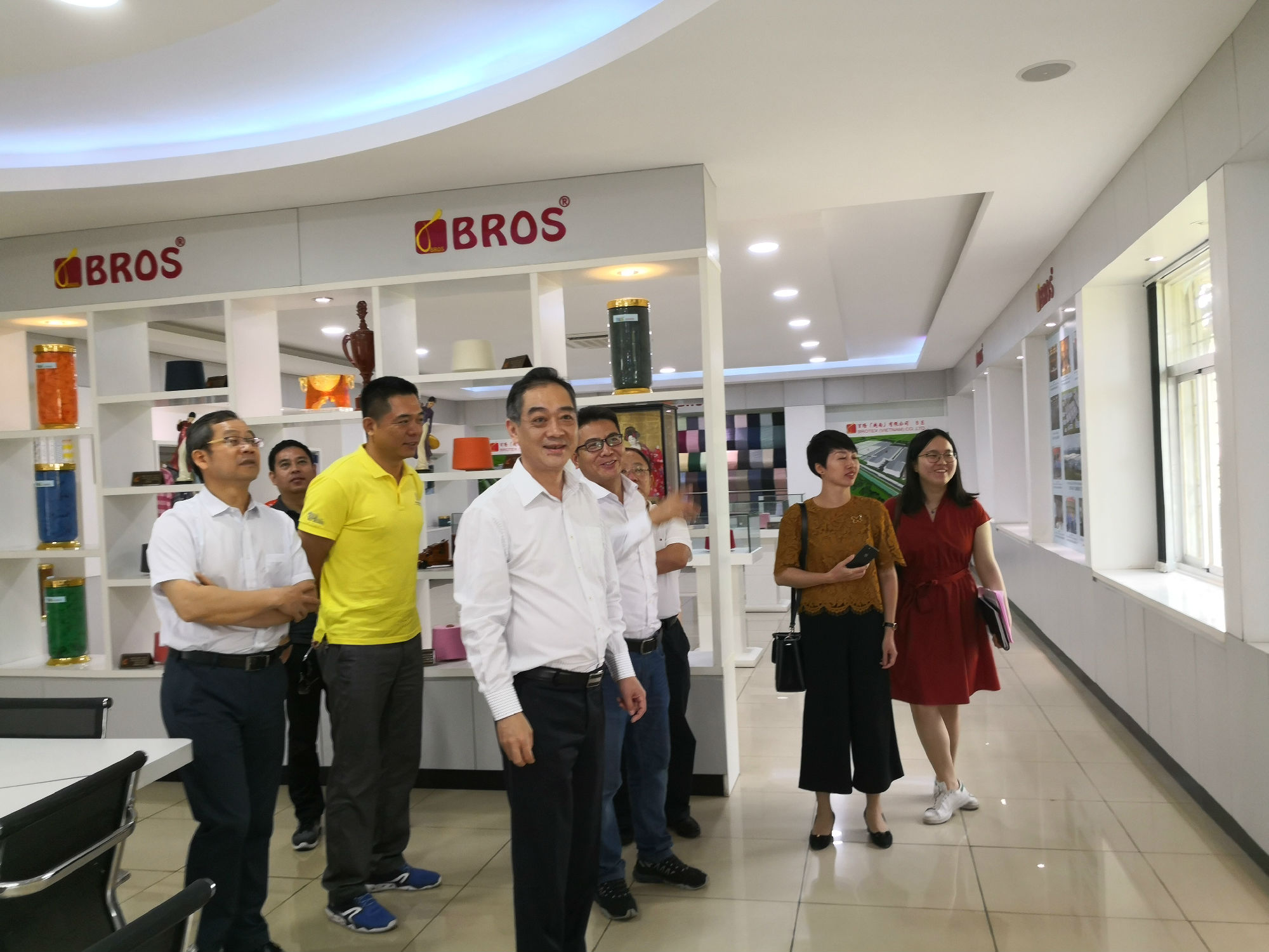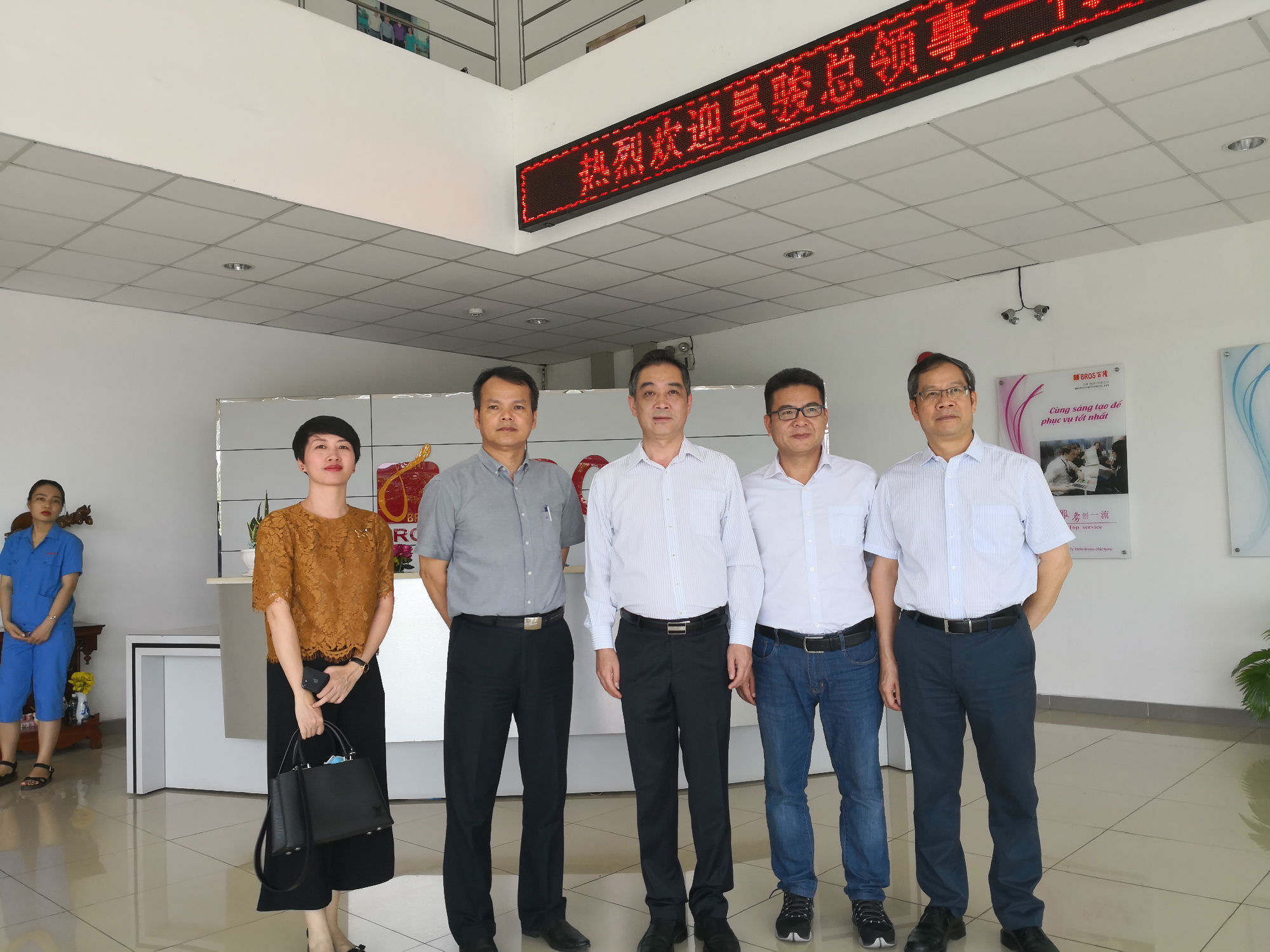 2018年10月13日,中国驻越南胡志明市总领馆吴骏总领事率韦锡臣商务参赞等一行莅临企业,在对百隆(越南)有限公司进行详细考察走访的同时,借住百隆(越南)会议展示厅,邀请了西宁省鹅油县福东工业园区内大型中资企业申洲国际、赛轮集团、鲁泰集团、百宏越南等重点企业代表座谈。各重点企业高层领导分别向总领馆领导介绍了本企业经营发展情况、以及文化融入、属地管理技术骨干培养等情况。