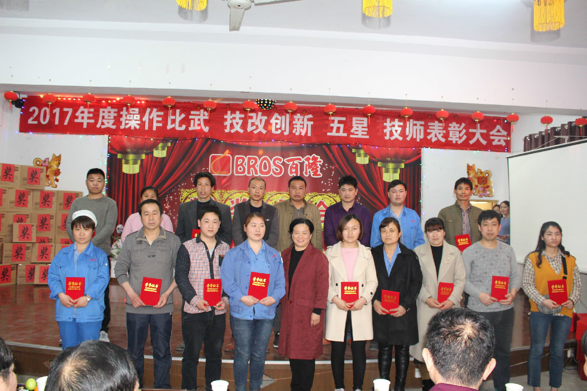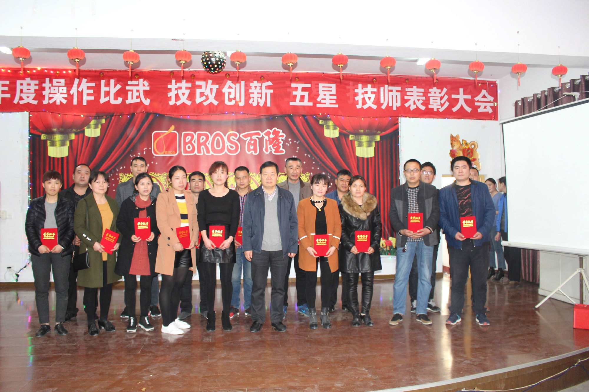 表彰会上,曹县百隆总经理对2017年度入选的116名操作能手,22名五星员工,43名创新技改标兵和2名技师获得者表示热烈的祝贺,并对全体员工一年来辛勤的工作致以崇高的敬意和诚挚的感谢!郭总肯定了全体员工共同努力取得的各项成绩:质量管控稳定提高,批次投诉率同比下降了2.5‰,交货准期率提高了1.37%;万锭产量再创新高;设备改造提前创效, E2涡流纺设备更新在四个车间紧密配合下,加班加点促使技改项目提高10天竣工;技改创新成果彼丰,全年实施效果较好的小改小革47项,为“节能降耗提质增效”活动的深入开展做出了积极贡献;《风险分级管控体系和隐患排查治理体系》的建立与落实,使安全生产管理更加规范。